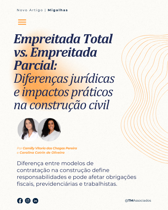 Para incorporadoras, investidores e empresas que atuam no desenvolvimento de empreendimentos imobiliários, a correta estruturação da empreitada assume importância ainda maior. A escolha entre empreitada total ou parcial pode impactar diretamente a gestão do cronograma da obra, a distribuição de riscos financeiros e a exposição a passivos trabalhistas e previdenciários. Por essa razão, a definição do modelo contratual deve estar alinhada não apenas com a estratégia técnica da obra, mas também com a estrutura jurídica e fiscal do empreendimento.